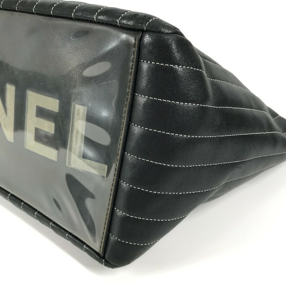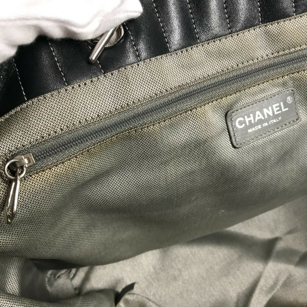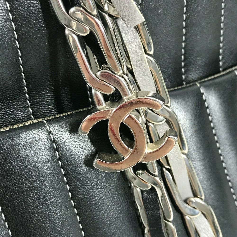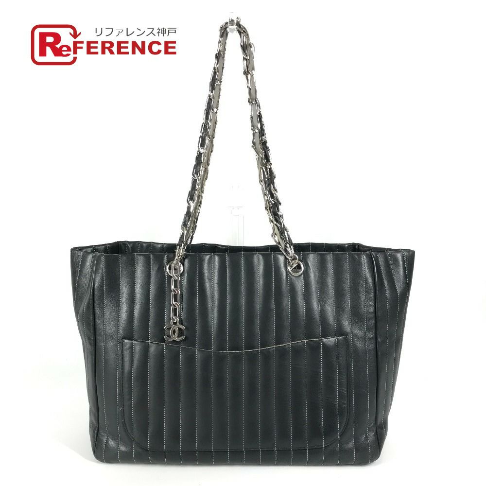 シャネル 黒色 CHANEL シャネル CC ココマーク ロゴ ストライプ Wチェーン 肩掛け トートバッグ カバン バッグ ショルダーバッグ レザー レディース ブラック 【中古】