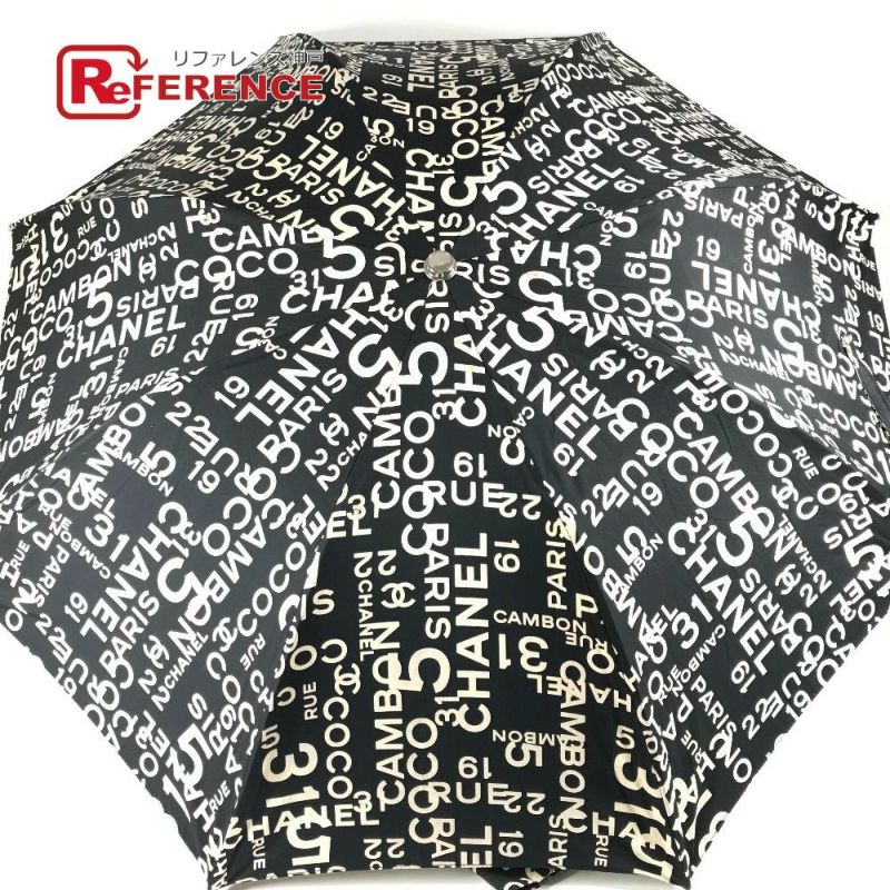 シャネル 黒色 CHANEL シャネル バイシーライン パラプリュイ アンブレラ 折り畳み傘 ワンタッチ ポーチ付き 傘 コットン レディース ブラック 【中古】