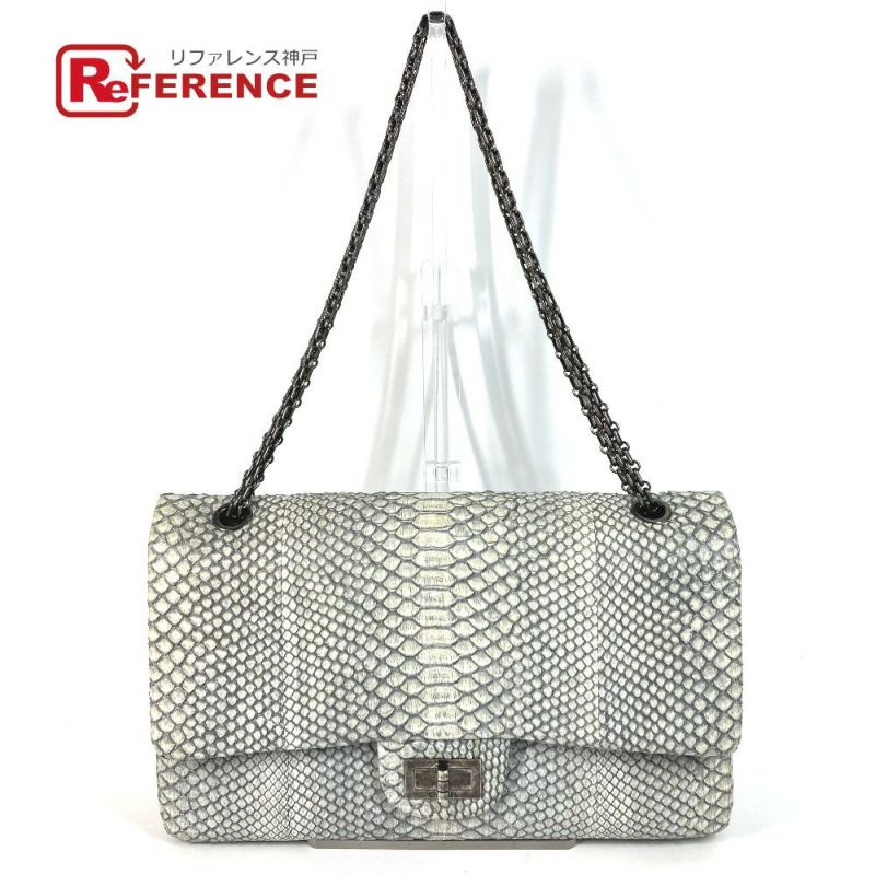 シャネル 青色 CHANEL シャネル Wフラップ 2.55金具 ロゴ カバン Wチェーン 斜め掛け チェーンバッグ フラップ ショルダーバッグ パイソン/レザー レディース グレー系×ブルー系 【中古】