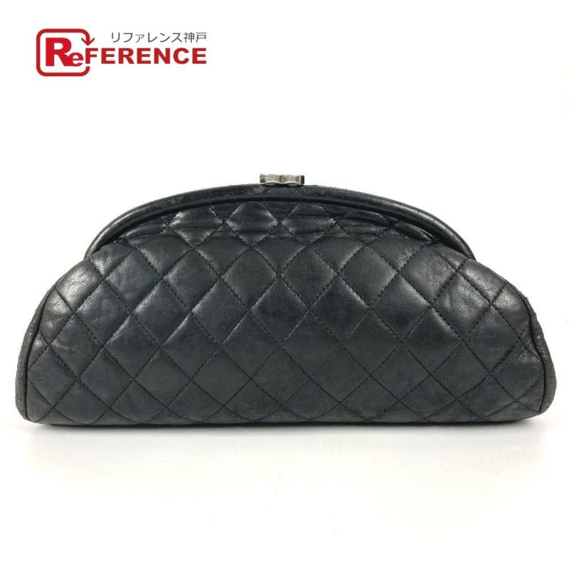 シャネル 黒色 CHANEL シャネル CC ココマーク がま口 キルティング セカンドバッグ ポーチ ロゴ クラッチバッグ レザー レディース ブラック 【中古】