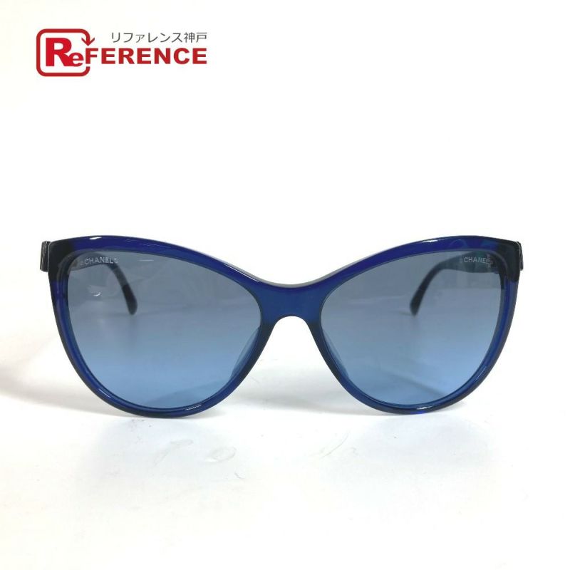 【美品】シャネル 紺色 CHANEL シャネル 5281-Q CC ココマーク りぼん リボン 眼鏡 メガネ アイウェア サングラス プラスチック レディース ネイビー 【中古】