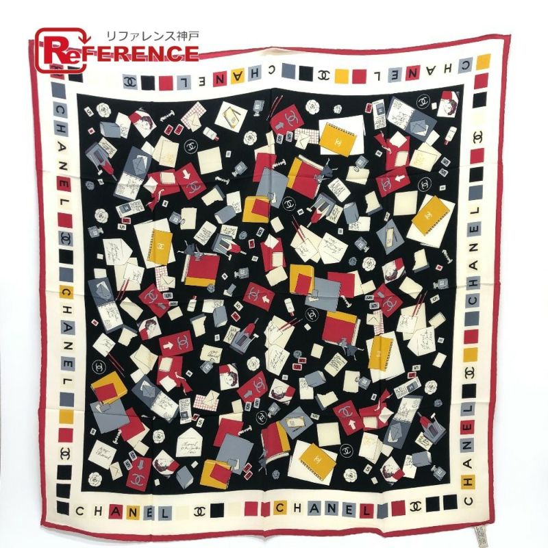 商品説明 シャネルのモチーフが散りばめられたデザインのスカーフ。