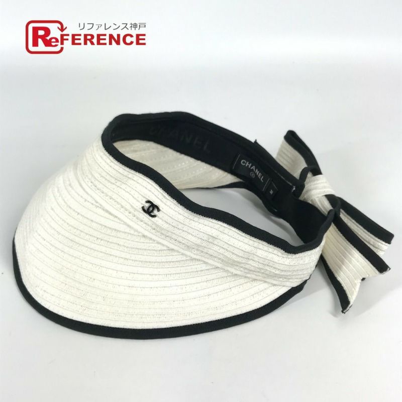 【中古良品】シャネル 白色 CHANEL シャネル 22P CC ココマーク リボン りぼん 帽子 サンバイザー ラフィア レディース ホワイト 【中古】