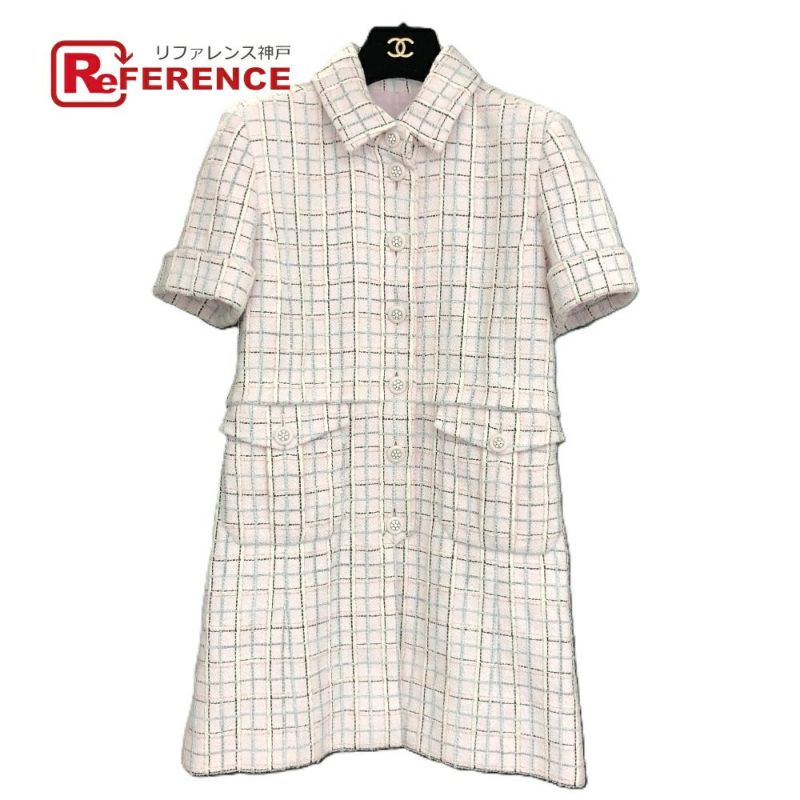 【美品】シャネル CHANEL シャネル P78912V ミニ丈 ワンピース ジャケット ツイード レディース ピンク 【中古】