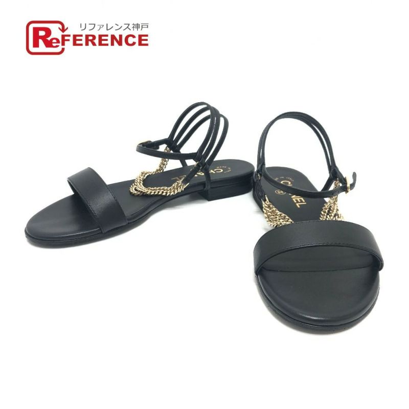 【未使用】シャネル 黒色 CHANEL シャネル G45169 23B 3連チェーン ココマークチャーム サンダル 靴 アパレル シューズ サンダル レザー /メタル レディース ブラック 未使用 【中古】