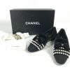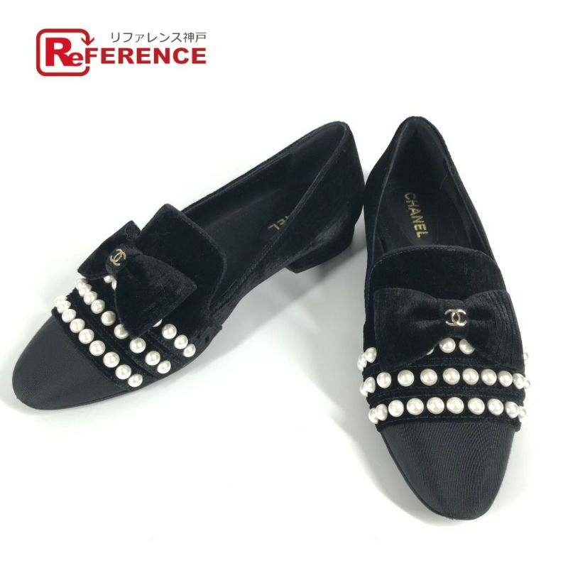 【中古良品】シャネル 黒色 CHANEL シャネル G34249 フラットシューズ 靴 リボン パール ココマーク CC ロゴ ラウンドトゥ アパレル パンプス シューズ スリッポン ベロア レディース ブラック 【中古】