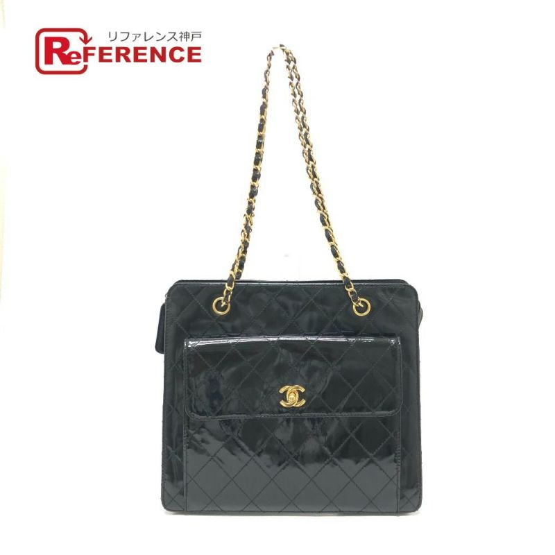 シャネル 黒色 CHANEL シャネル マトラッセ ココマーク チェーンバック ショルダーバック カバン ショルダーバッグ エナメル レディース ブラック 【中古】