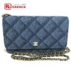 【未使用】シャネル 青色 CHANEL シャネル AP0250 長財布 チェーンバッグ マトラッセ チェーンウォレット 斜め掛け ショルダーバッグ デニム レディース ブルー 未使用 【中古】