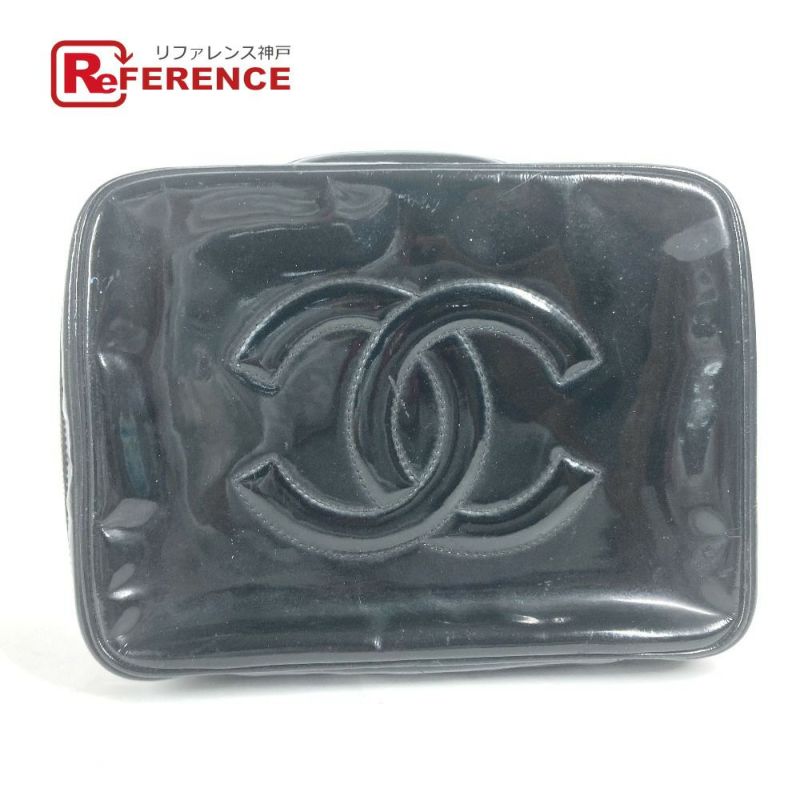 シャネル 黒色 CHANEL シャネル ヴィンテージ CC ココマーク ハンドバッグ カバン バニティバッグ エナメル レディース ブラック 【中古】
