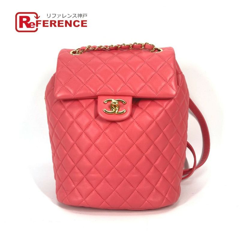 【美品】シャネル CHANEL シャネル カバン CC ココマーク マトラッセ キルティング バックパック リュックサック ラムスキン レディース ピンク 【中古】
