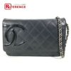 【中古良品】シャネル 黒色 CHANEL シャネル A46646 カンボンライン CC ココマーク ロゴ チェーンウォレット カバン 長財布 斜め掛け チェーンバッグ ショルダーバッグ レザー レディース ブラック 【中古】