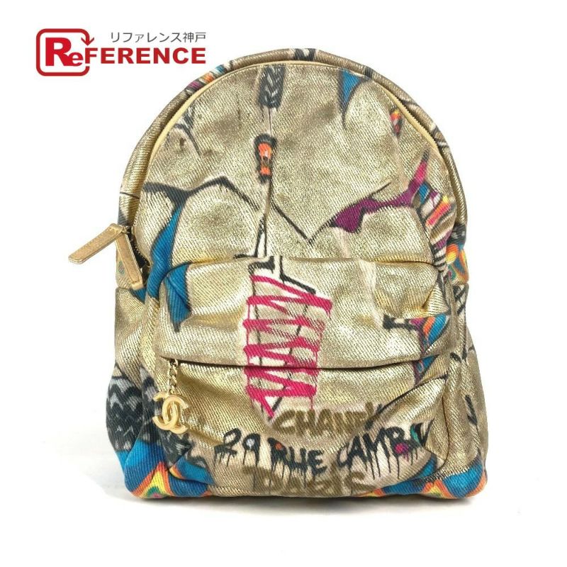 【中古良品】シャネル 金色 CHANEL シャネル AS0867 ココマーク CC ロゴ グラフティ カバン バックパック リュックサック レザー/キャンバス ユニセックス ゴールド 【中古】