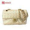 シャネル 薄茶色 CHANEL シャネル ココマーク CC チョコバー Wチェーン 斜め掛け ショルダーバッグ キャンバス レディース ベージュ 【中古】