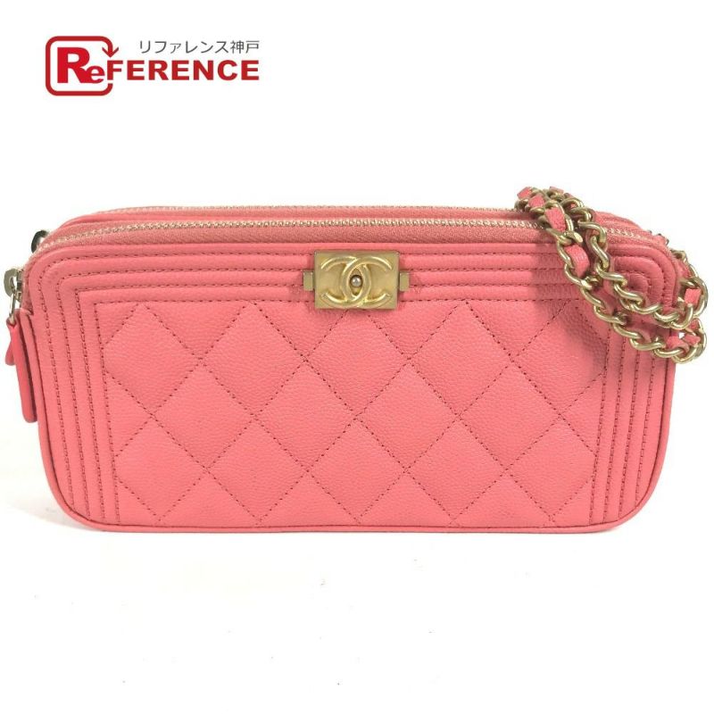 シャネル 金色 CHANEL シャネル A84069 CCココマーク ボーイシャネル ココマーク ショルダーバッグ 斜め掛け 長財布 ショルダーバッグ キャビアスキン レディース ピンク×ゴールド金具 【中古】