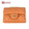 【美品】シャネル 橙色 CHANEL シャネル AP0230 CC ココマーク マトラッセ キルティング コンパクトウォレット 3つ折り財布 ラムスキン レディース オレンジ 【中古】