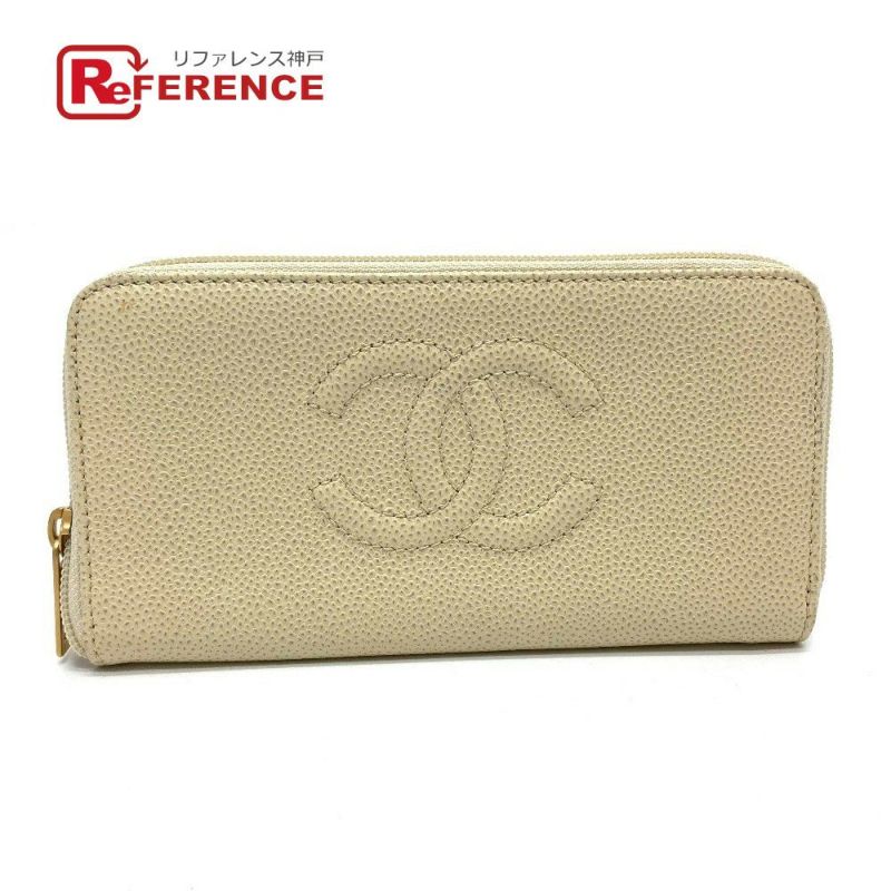 シャネル 薄茶色 CHANEL シャネル A13228 CC ココマーク ラウンドファスナー ロングウォレット 長財布 キャビアスキン レディース ベージュ系 【中古】