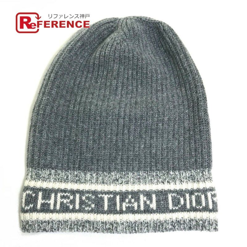 【美品】クリスチャンディオール Christian Dior クリスチャンディオール ロゴ D-White(D-ホワイト) 帽子 ビーニー ニットキャップ ニット帽 ウール/カシミヤ レディース グレー 【中古】