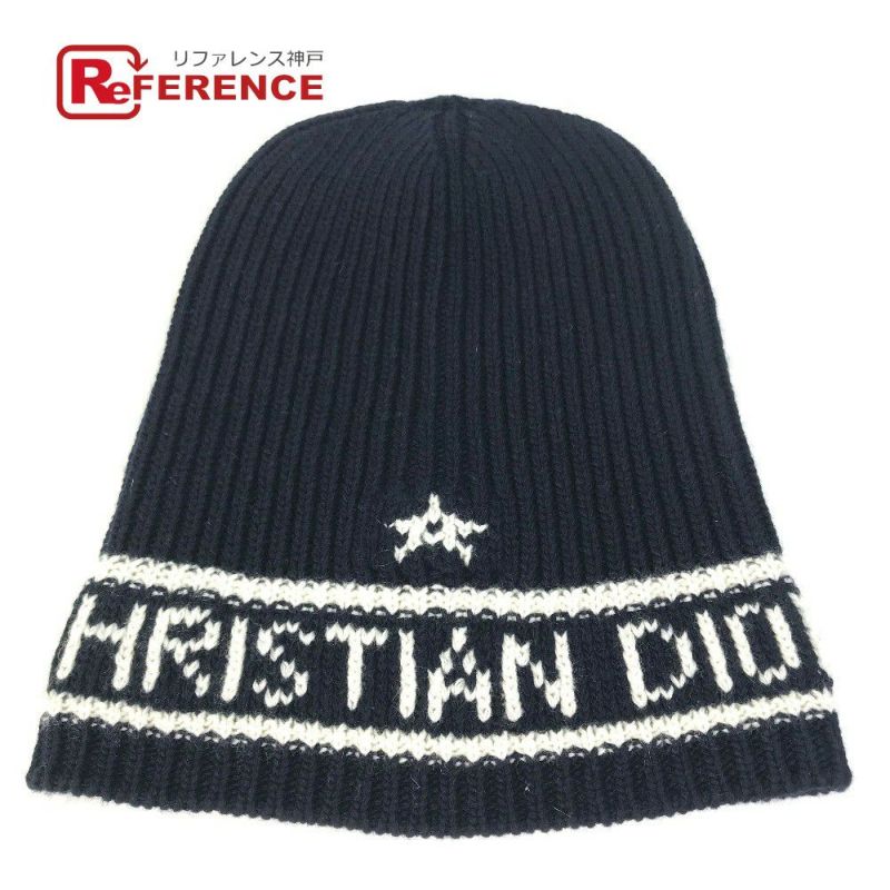 【美品】クリスチャンディオール 紺色 Christian Dior クリスチャンディオール 31NOE714IXGH ビーニー 帽子 ニット帽 ニットキャップ ロゴ 帽子 ニット帽 ウール/カシミヤ レディース ネイビー 【中古】