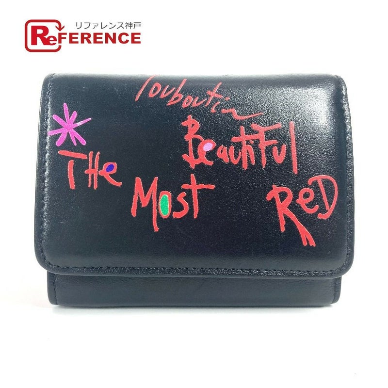 【中古良品】クリスチャンルブタン 黒色 Christian Louboutin クリスチャンルブタン 1205105 ルビガガ コンパクトウォレット 3つ折り財布 レザー レディース ブラック 【中古】