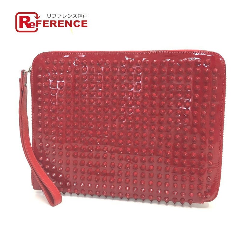 【中古良品】クリスチャンルブタン 赤色 Christian Louboutin クリスチャンルブタン スパイクスタッズ クラッチバッグ カバン iPadケース エナメル/レザー ユニセックス レッド 【中古】