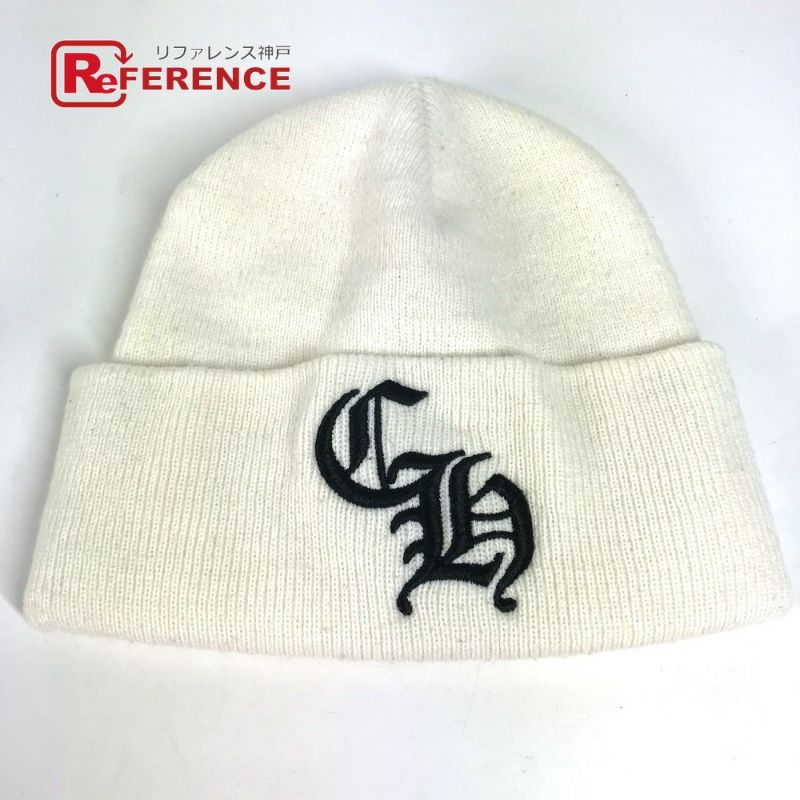クロムハーツ 白色 CHROME HEARTS クロムハーツ ロゴ CH ビーニー 帽子 ニット帽 ニットキャップ ニット帽 アクリル ユニセックス ホワイト 【中古】