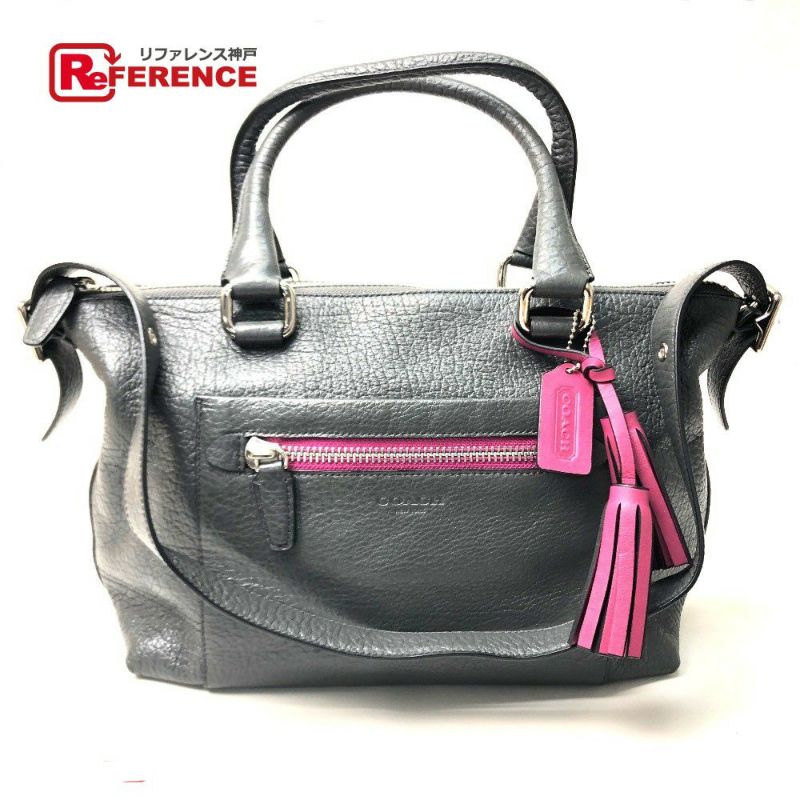 【美品】コーチ COACH コーチ 21140 テクスチャード レガシー サッチェル カバン ショルダーバッグ レザー レディース チャコールグレー グレー 【中古】