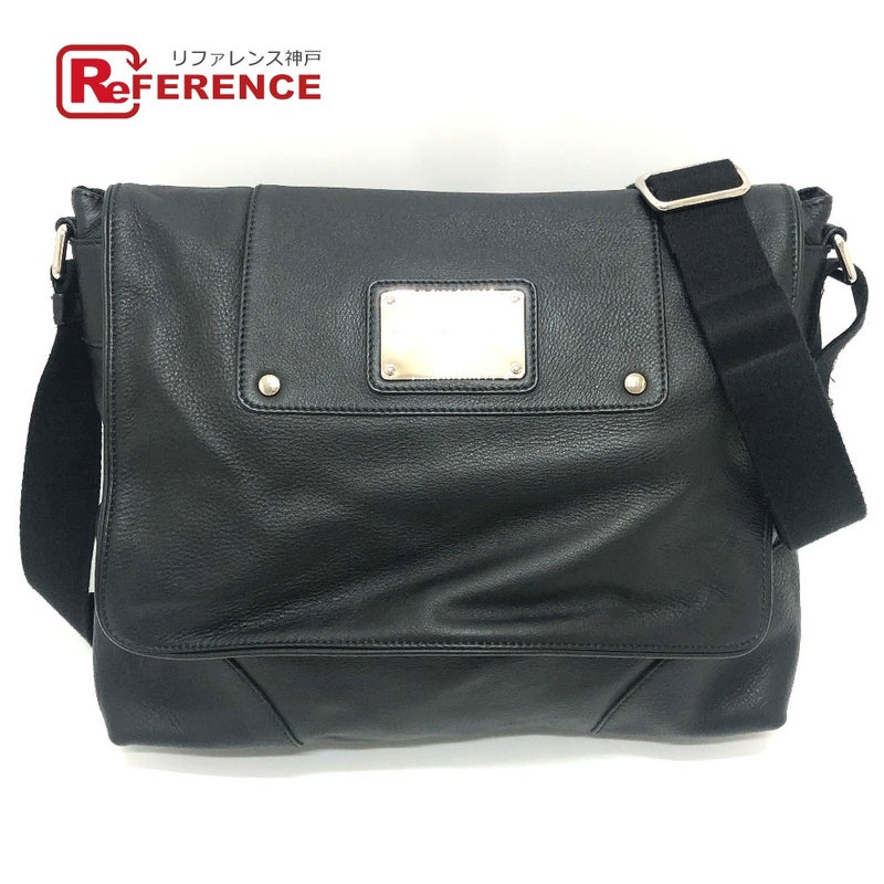 【中古良品】ドルチェアンドガッバーナ 黒色 DOLCE&GABBANA ドルチェアンドガッバーナ ロゴプレート フラップ付き メッセンジャー 斜め掛け ショルダーバッグ レザー レディース ブラック 【中古】
