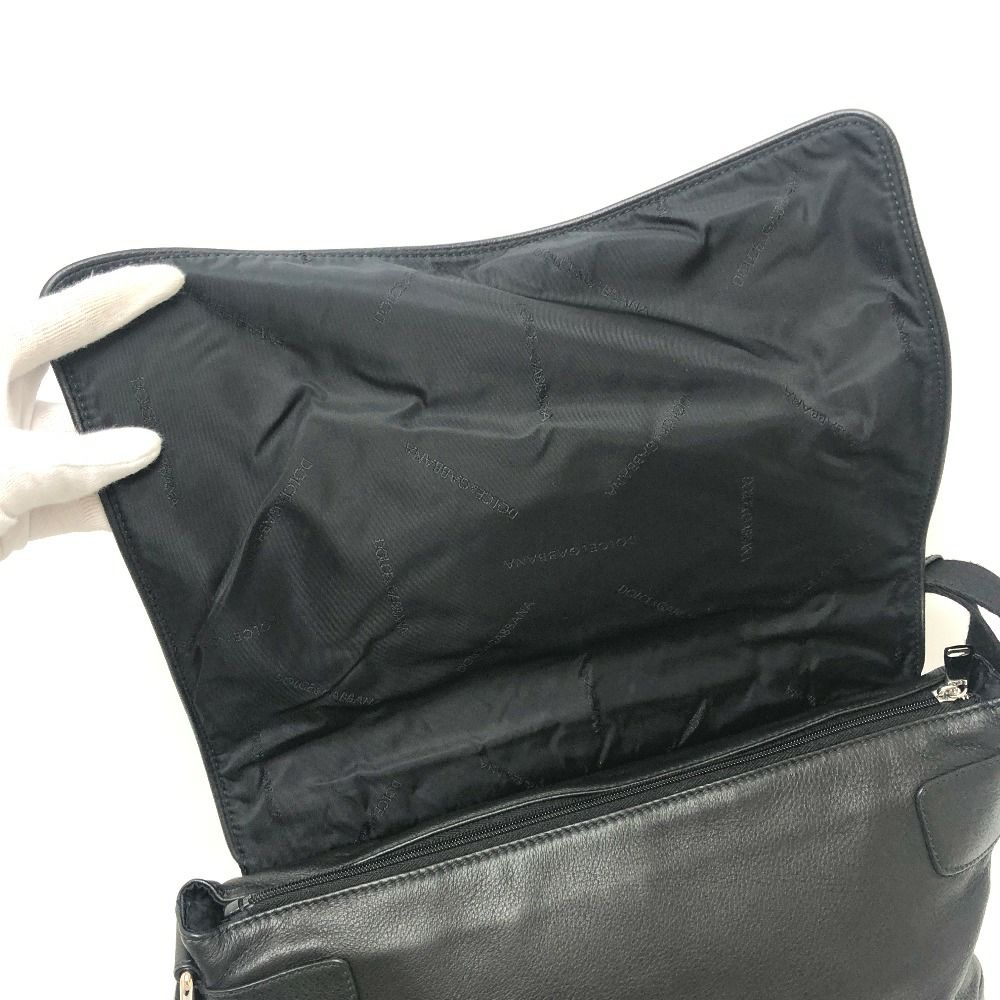 【中古良品】ドルチェアンドガッバーナ 黒色 DOLCE&GABBANA ドルチェアンドガッバーナ ロゴプレート フラップ付き メッセンジャー 斜め掛け ショルダーバッグ レザー レディース ブラック 【中古】