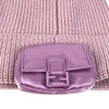 【美品】フェンディ 紫色 FENDI フェンディ FXQ938 バケットバッグデザイン ロゴ ポケット付き ビーニー 帽子 ニット帽 ニットキャップ ニット帽 ウール レディース パープル 【中古】