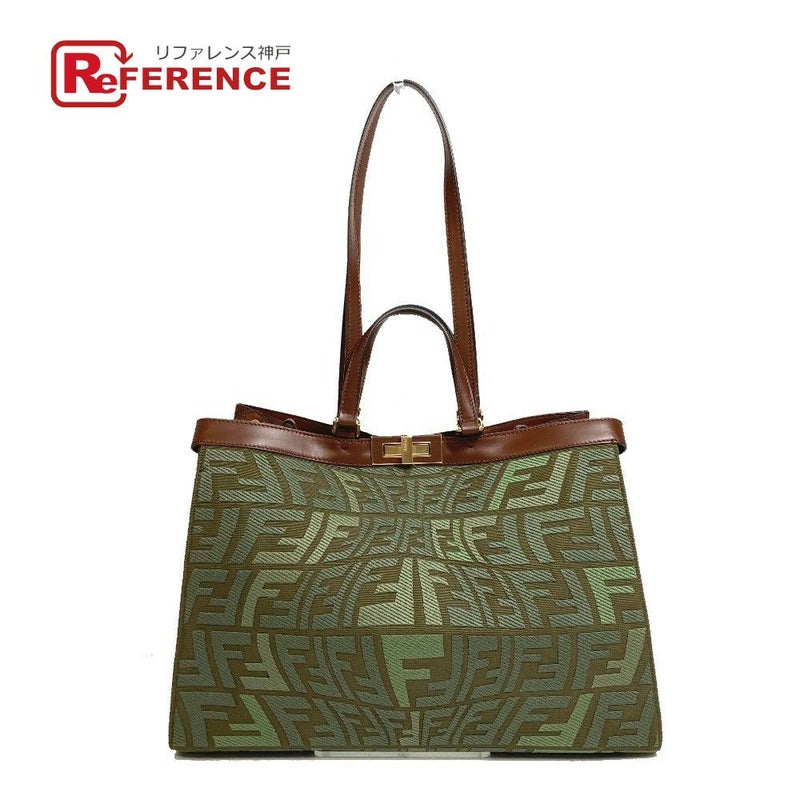 【未使用】フェンディ 緑色 FENDI フェンディ 8BH374 FF総柄 ピーカブー エックストート カバン 2WAY ショルダーバッグ トートバッグ コットン レディース グリーン 未使用 【中古】