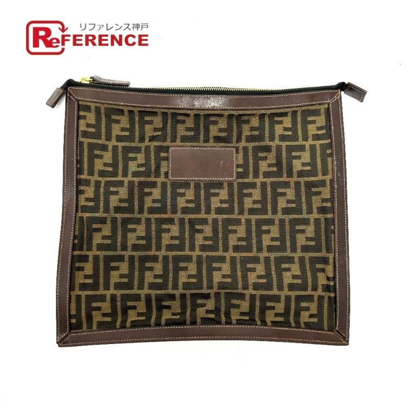 フェンディ 茶色 FENDI フェンディ ズッカ柄 フラット カバン セカンドバッグ キャンバス レディース ブラウン 【中古】