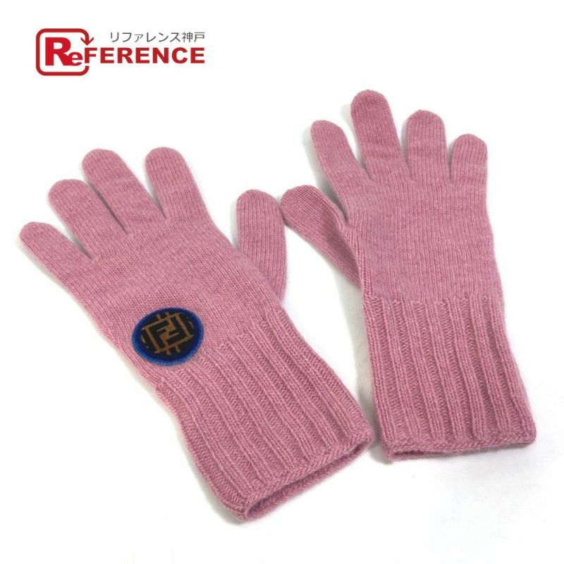 【新品同様】フェンディ FENDI フェンディ FXY554 ズッカ ワッペン グローブ ロゴ 手袋 ウール/カシミヤ レディース ピンク 新品同様 【中古】