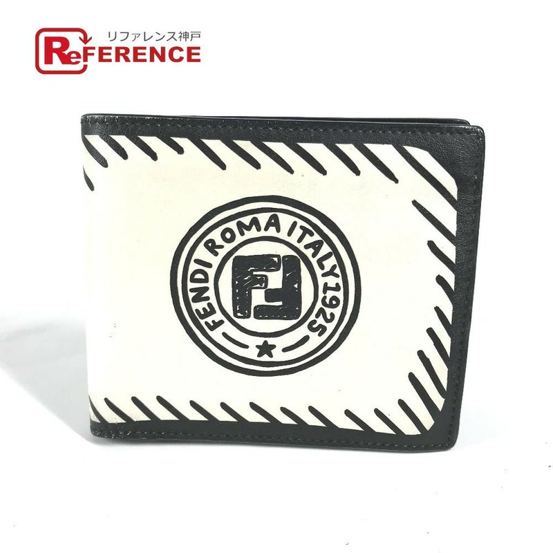 【中古良品】フェンディ 白色 FENDI フェンディ 7M0169 コンパクトウォレット ジョシュアヴィーダス Joshua Vides コラボ 札入れ 2つ折り財布 レザー メンズ ホワイト 【中古】