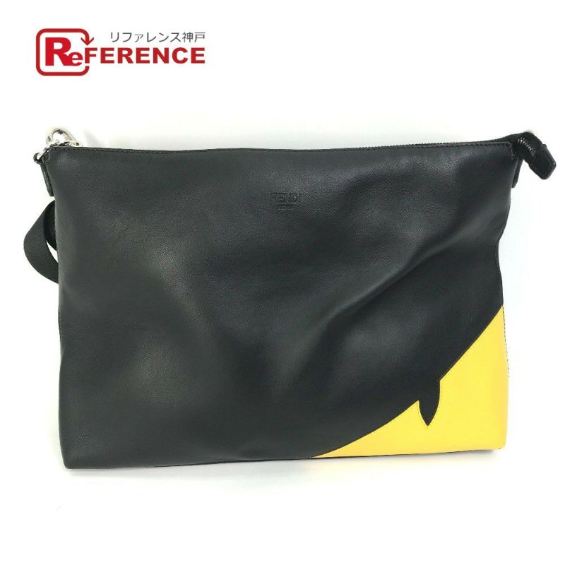 【中古良品】フェンディ 黒色 FENDI フェンディ 7VA470 斜め掛け クラッチバッグ モンスター バグス 2WAY メッセンジャーバッグ カバン ショルダーバッグ レザー メンズ ブラック 【中古】