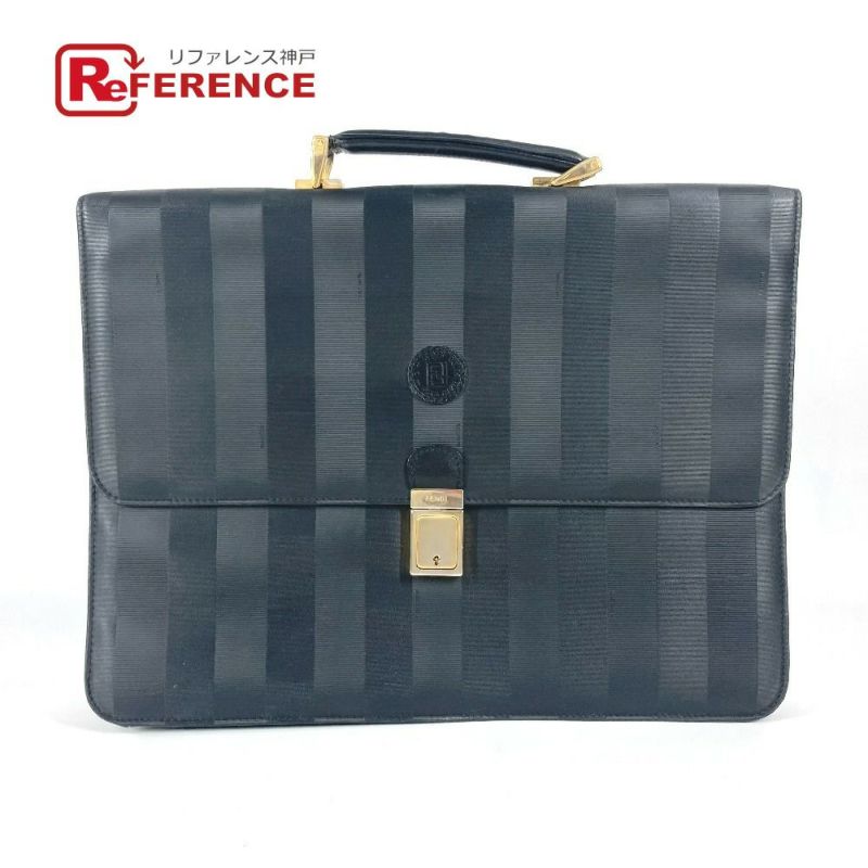 フェンディ 黒色 FENDI フェンディ ヴィンテージ ペカン ロゴ トートバッグ ハンドバッグ ブリーフケース ビジネスバッグ PVC/レザー ユニセックス ブラック 【中古】