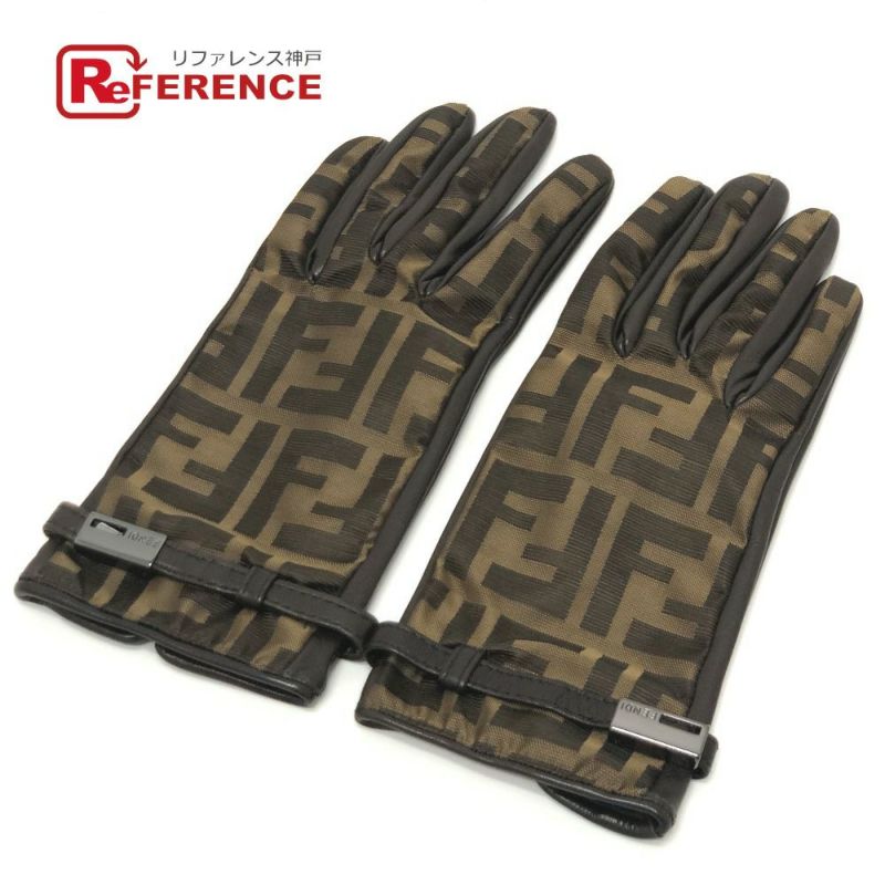 フェンディ 茶色 FENDI フェンディ ズッカ柄 FFロゴ アパレル グローブ 防寒具 冬物 手袋 キャンバス /レザー レディース ブラウン 【中古】