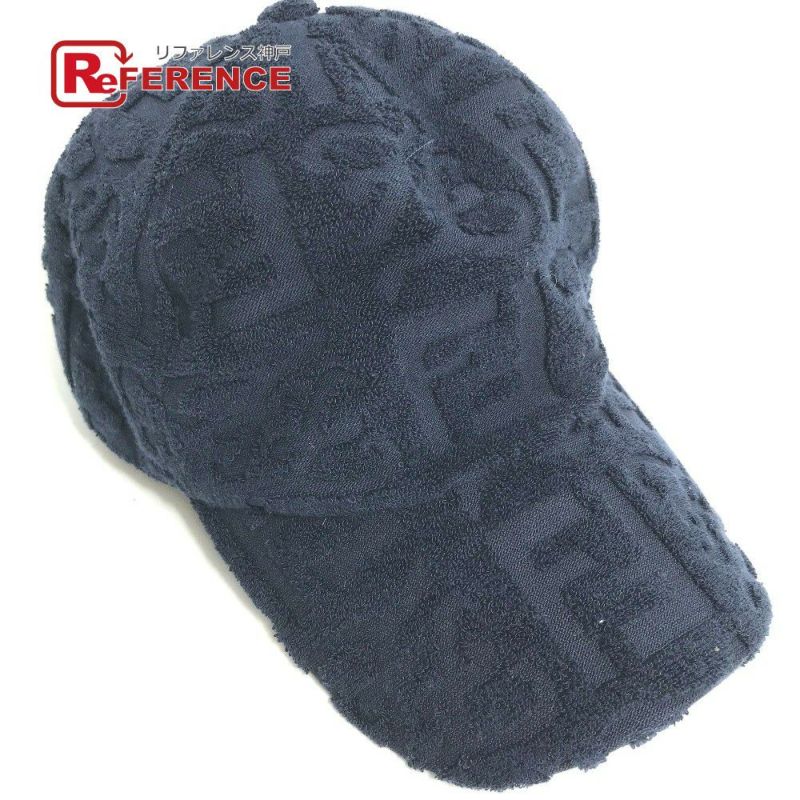 【美品】フェンディ 紺色 FENDI フェンディ FXQ768 ズッカ パイル 帽子 キャップ帽 ベースボール キャップ コットン /ナイロン レディース ネイビー 【中古】
