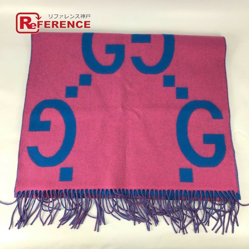 【未使用】グッチ GUCCI グッチ 726526 GGジャガード フリンジ バイカラー マフラー ウール レディース ピンク 未使用 【中古】