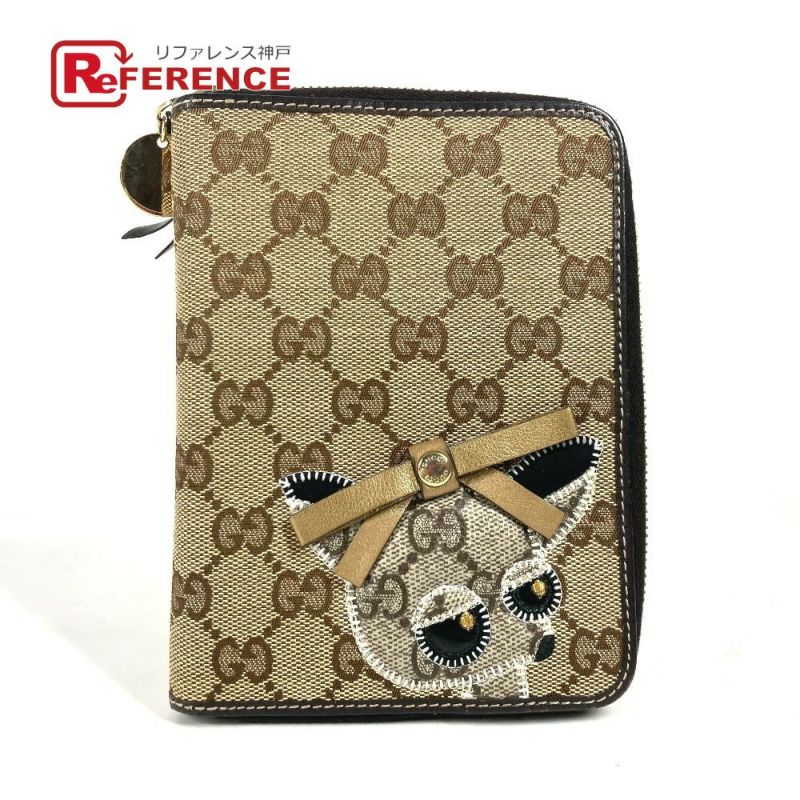 【中古良品】グッチ 薄茶色 GUCCI グッチ 233152 GG グッチョリ チワワ 犬 手帳ケース システム手帳 ラウンドファスナー 手帳カバー GGキャンバス/レザー ユニセックス ベージュ 【中古】