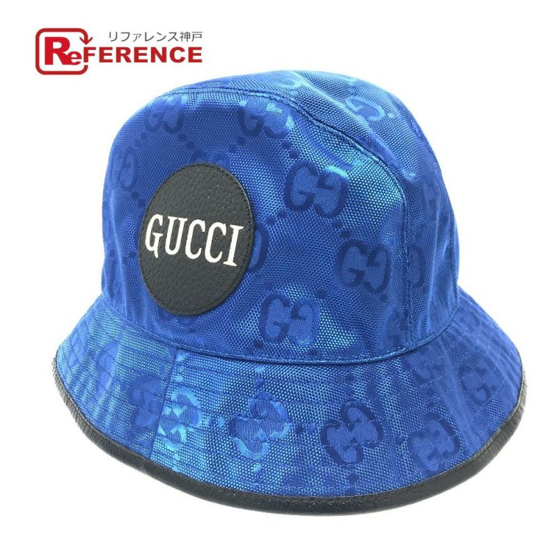 【未使用】グッチ 青色 GUCCI グッチ 627115 Off The Grid オフザグリッド バケットハット 帽子 フェドラハット ハット 帽子 ナイロン メンズ ブルー 未使用 【中古】