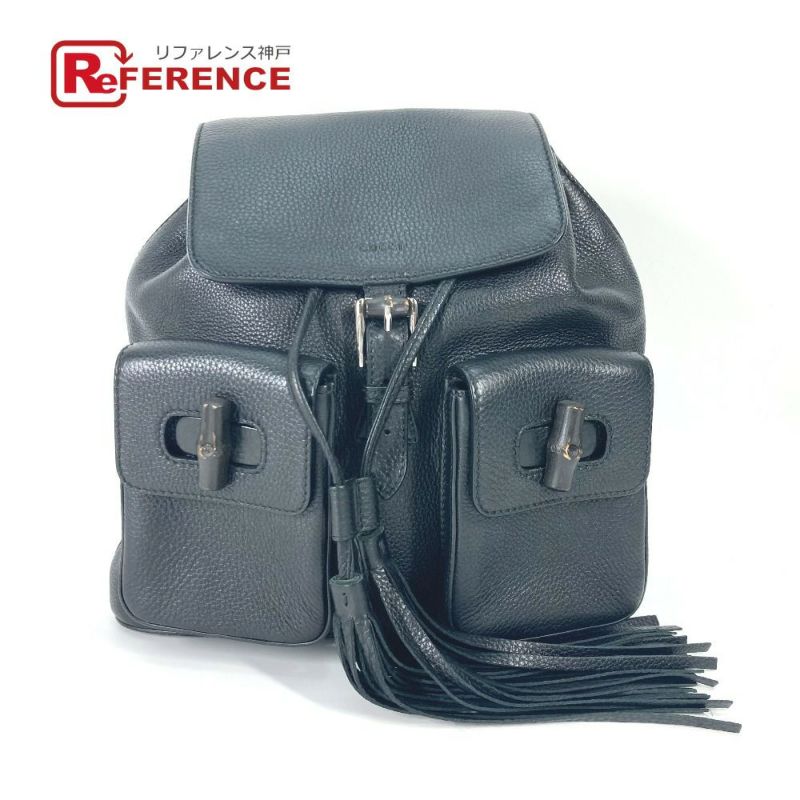 【中古良品】グッチ 黒色 GUCCI グッチ 370833 バンブー バックパック フリンジ タッセル カバン リュックサック レザー レディース ブラック 【中古】