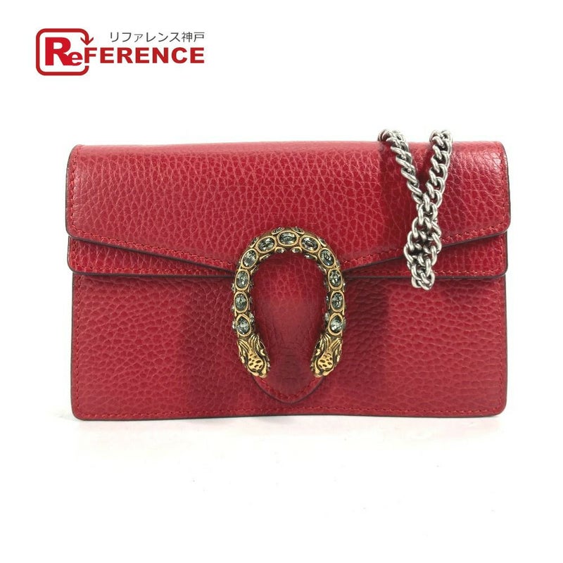 【新品同様】グッチ 赤色 GUCCI グッチ 476432 2WAY バッグ ポーチ クラッチバッグ ディオニュソス ラインストーン チェーン 斜め掛け ショルダーバッグ レザー レディース レッド 新品同様 【中古】