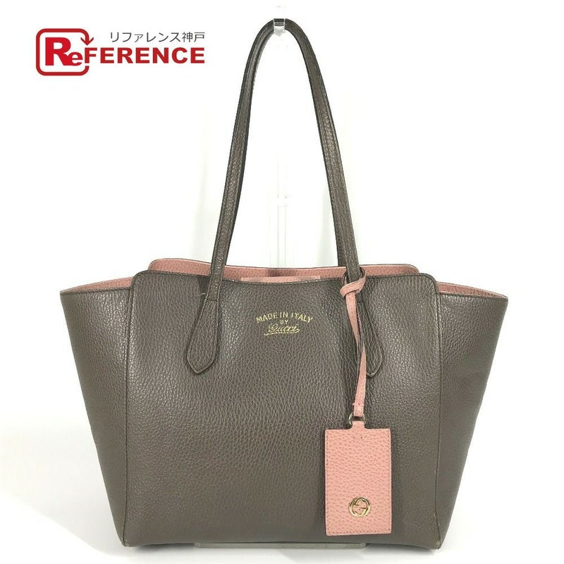 グッチ GUCCI グッチ 354408 バイカラー ロゴ スウィング カバン トートバッグ 肩掛け ショルダーバッグ レザー ユニセックス グレー 【中古】
