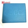 【新品同様】グッチ 青色 GUCCI グッチ 658681 ロゴ ウォレット コンパクトウォレット 2つ折り財布 レザー メンズ ブルー 新品同様 【中古】