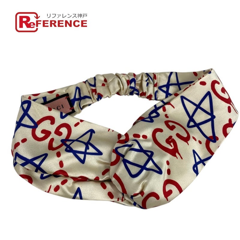 【中古良品】グッチ 白色 GUCCI グッチ ロゴ GG ゴースト ヘッドバンド ヘアゴム ヘアアクセサリー ヘアバンド シルク ユニセックス ホワイト 【中古】