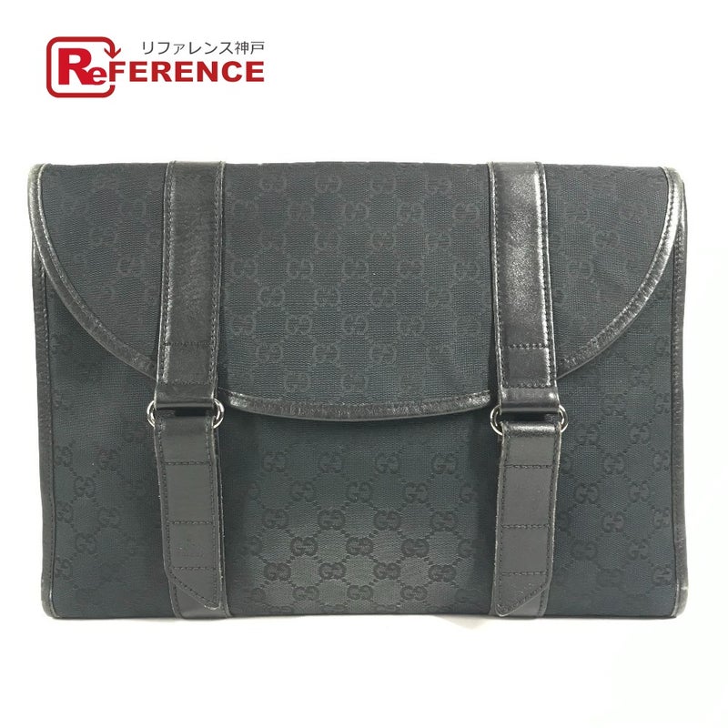 グッチ 黒色 GUCCI グッチ 145852 ロゴ GG カバン ポーチ フラップ セカンドバッグ クラッチバッグ GGキャンバス/レザー ユニセックス ブラック 【中古】