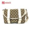 グッチ 薄茶色 GUCCI グッチ 145858 GG カバン フラップ 斜め掛け ショルダーバッグ GGキャンバス/レザー ユニセックス ベージュ 【中古】