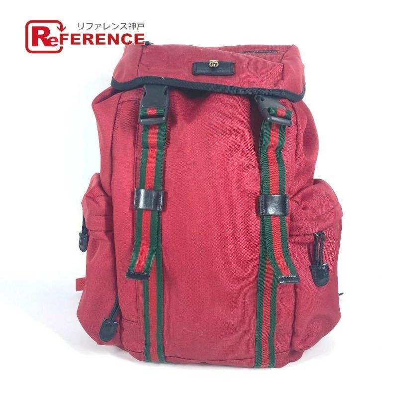 【中古良品】グッチ 赤色 GUCCI グッチ 429037 タイガーヘッド テクノ ロゴ シェリーライン ウエブライン カバン バックパック リュックサック ナイロンキャンバス ユニセックス レッド 【中古】