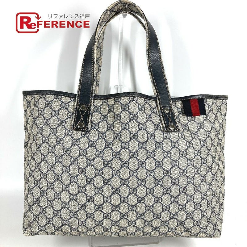 グッチ 紺色 GUCCI グッチ 211134 GGスプリーム シェリーライン GG ロゴ カバン 肩掛け トートバッグ ショルダーバッグ GGスプリームキャンバス ユニセックス ネイビー 【中古】