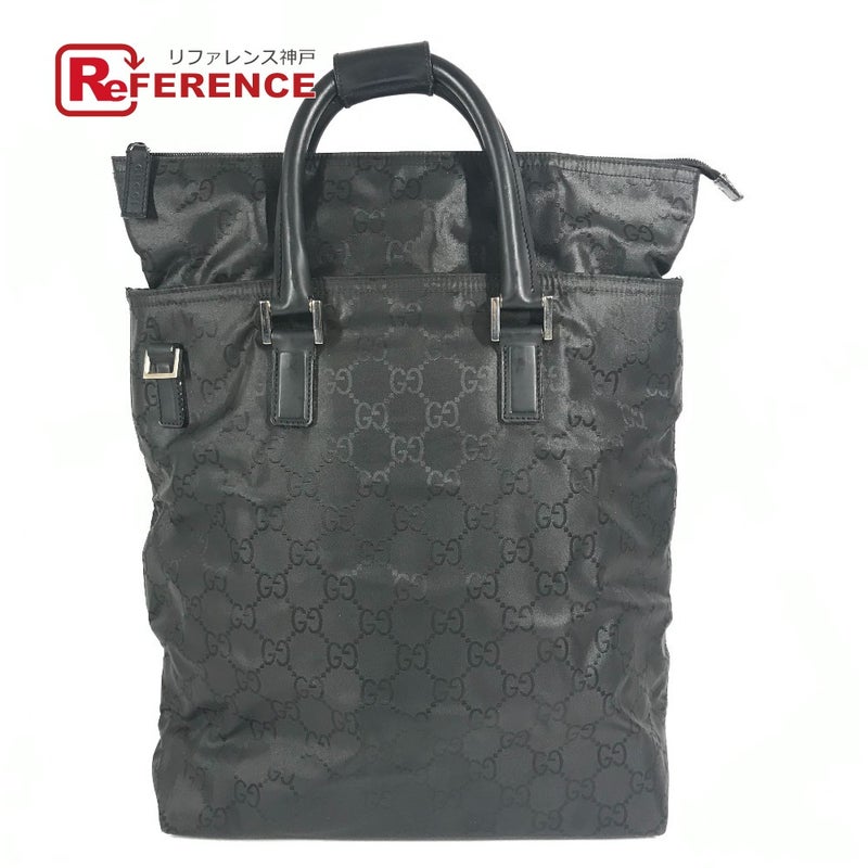 グッチ 黒色 GUCCI グッチ 012-0380 ロゴ GG 縦型トート トートバッグ カバン ハンドバッグ ナイロン ユニセックス ブラック 【中古】